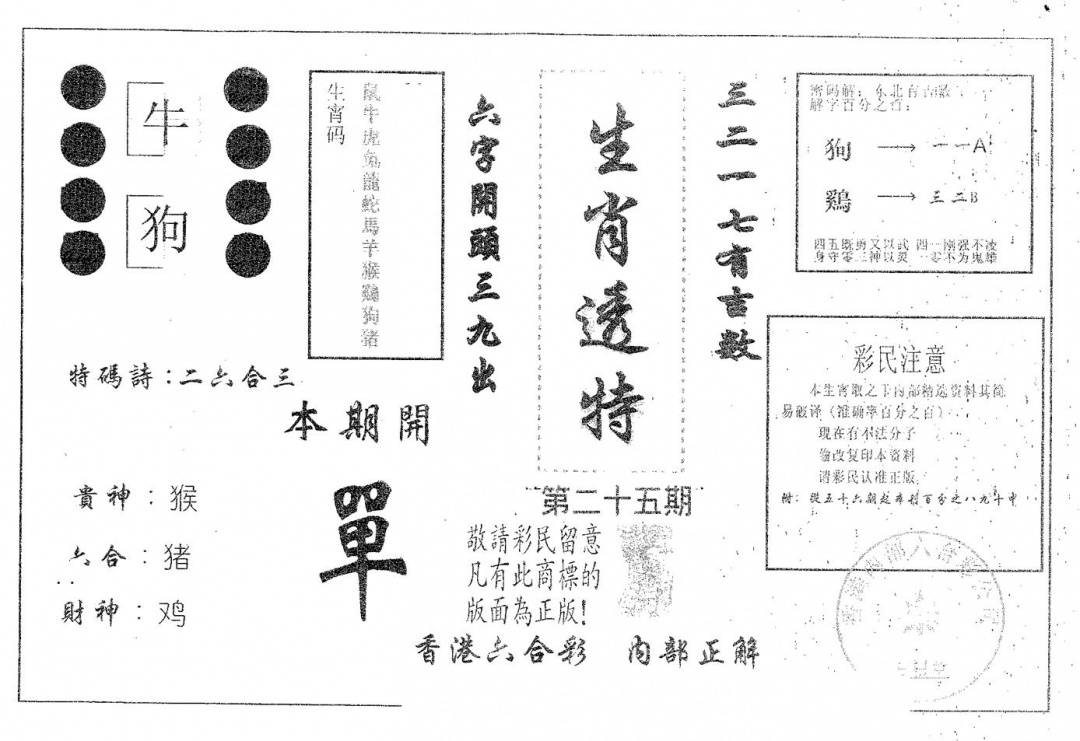 彩卷后庄A(保证香港版)