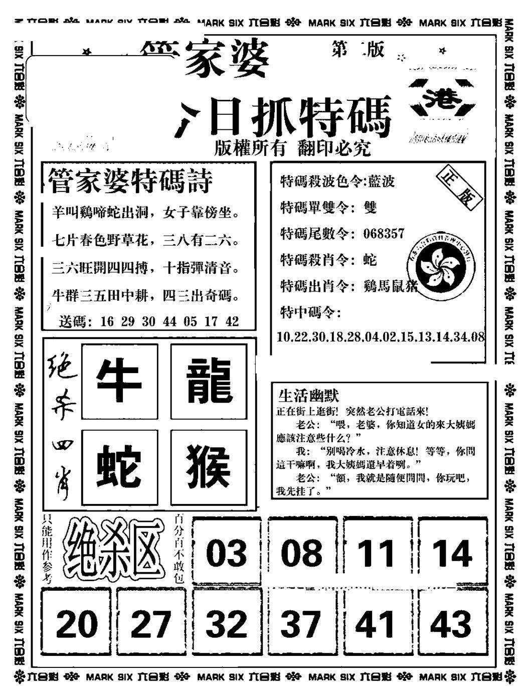 今日抓特码A(正版)