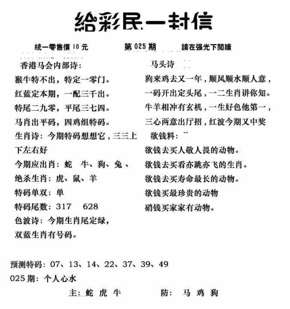 心水特码(信封)