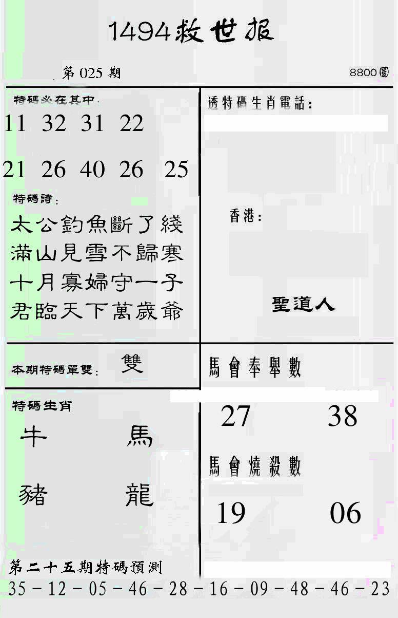 曾道人特码救世报B