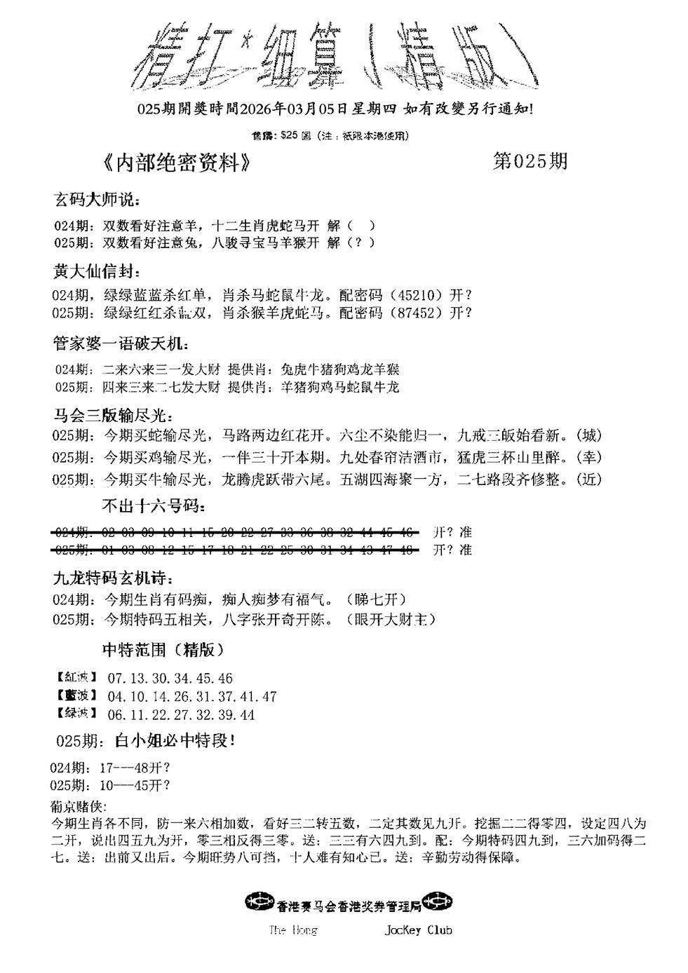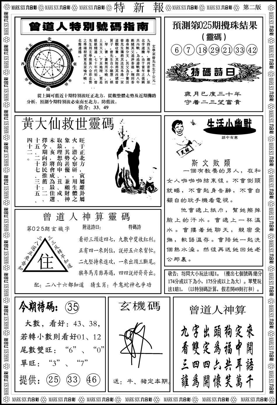 曾道人权威消息A