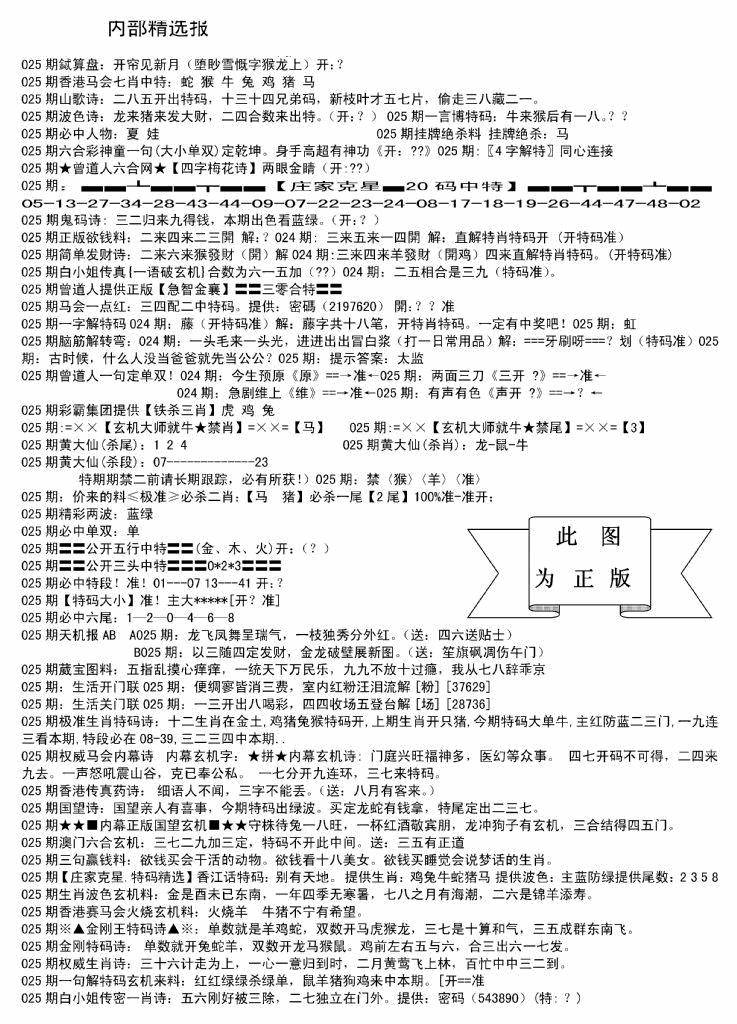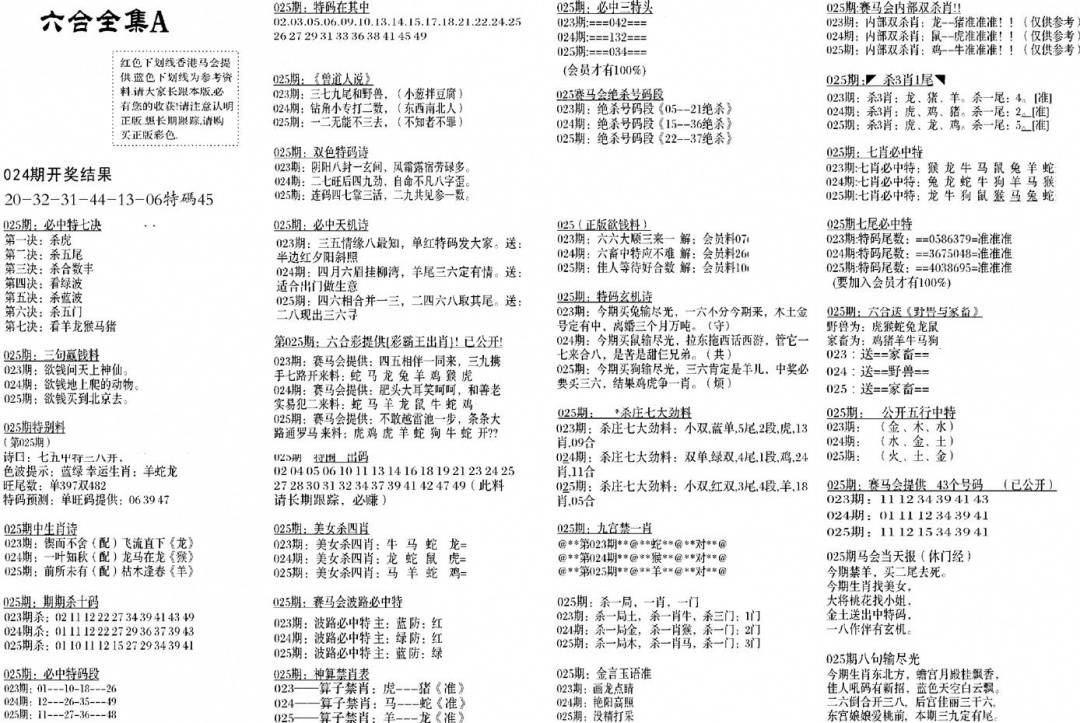 新版内部玄机A