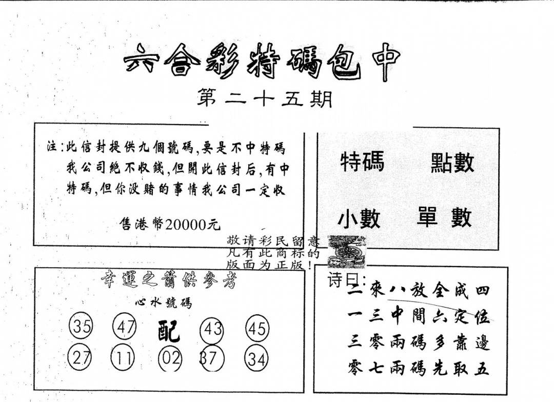 老幸运六合(信封)
