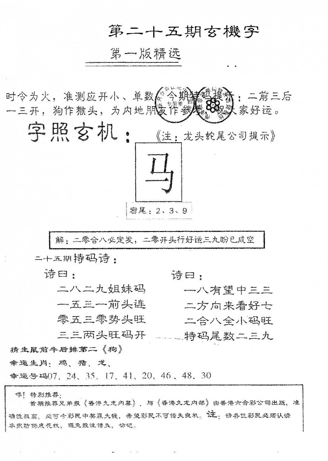 特码玄机字