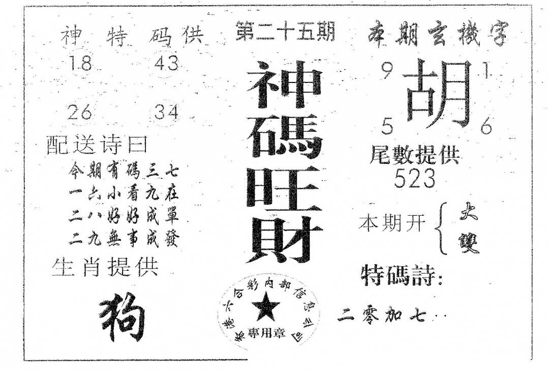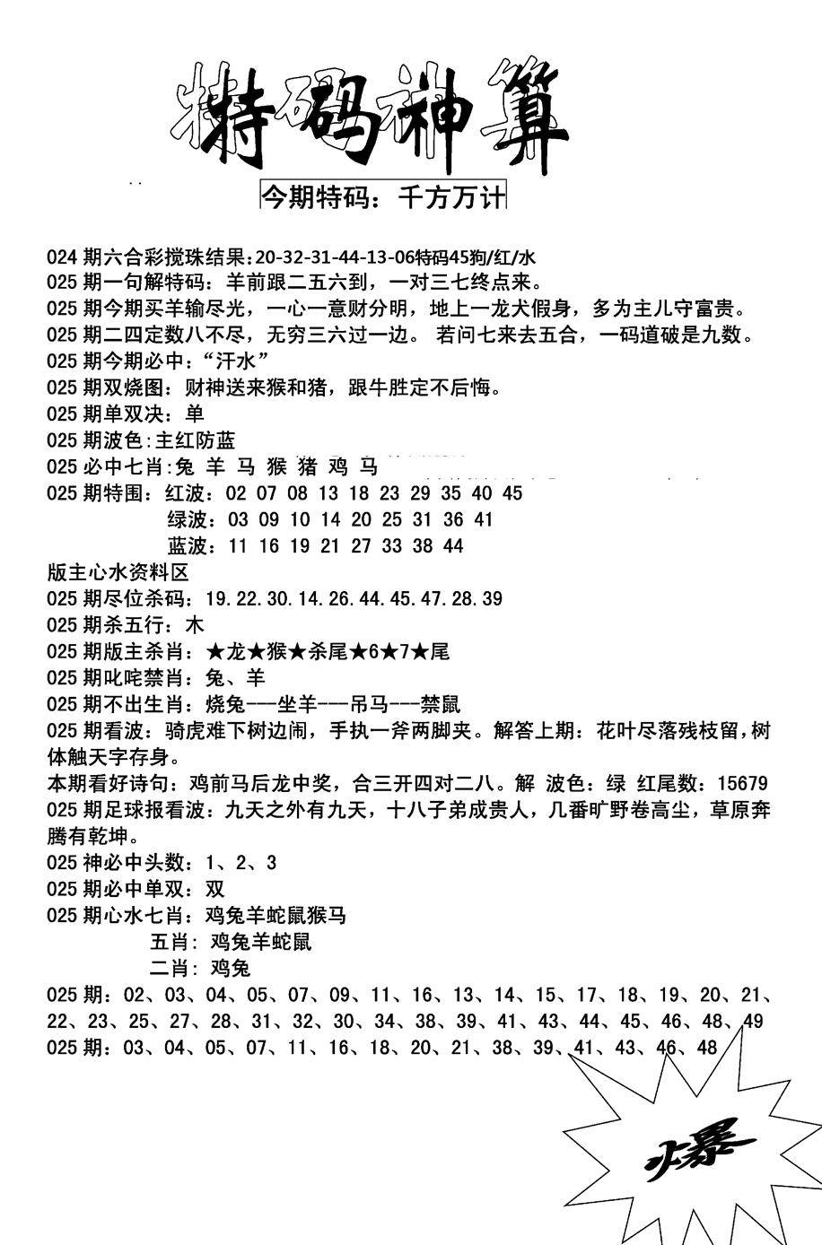 另版心水特码(早图)