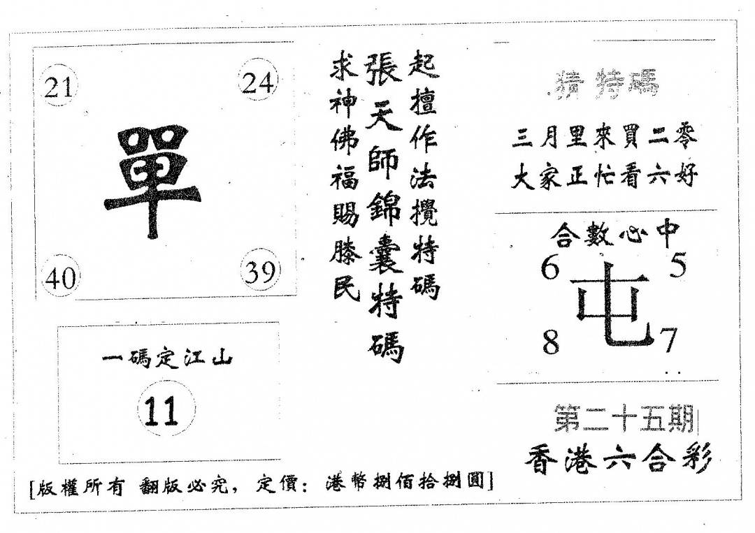 另版一心猜特码
