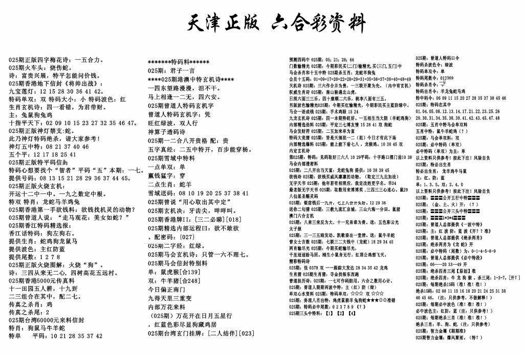天津正版六合彩资料