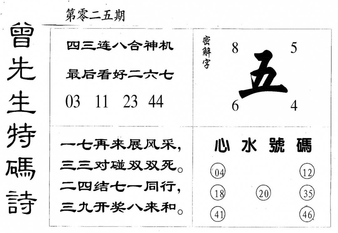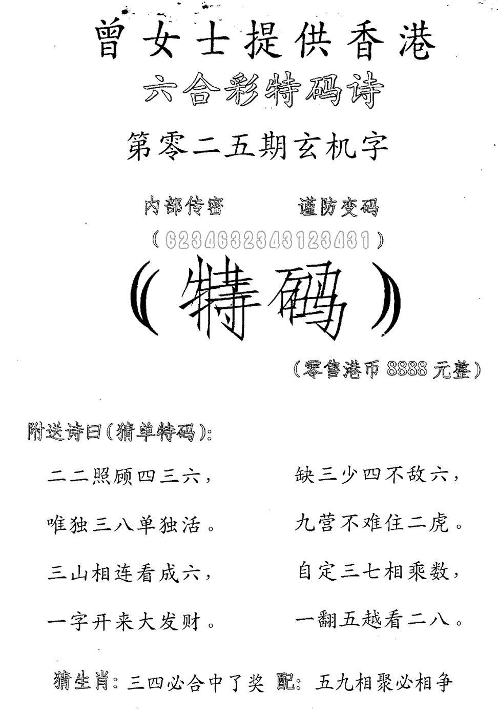 曾女士特码诗